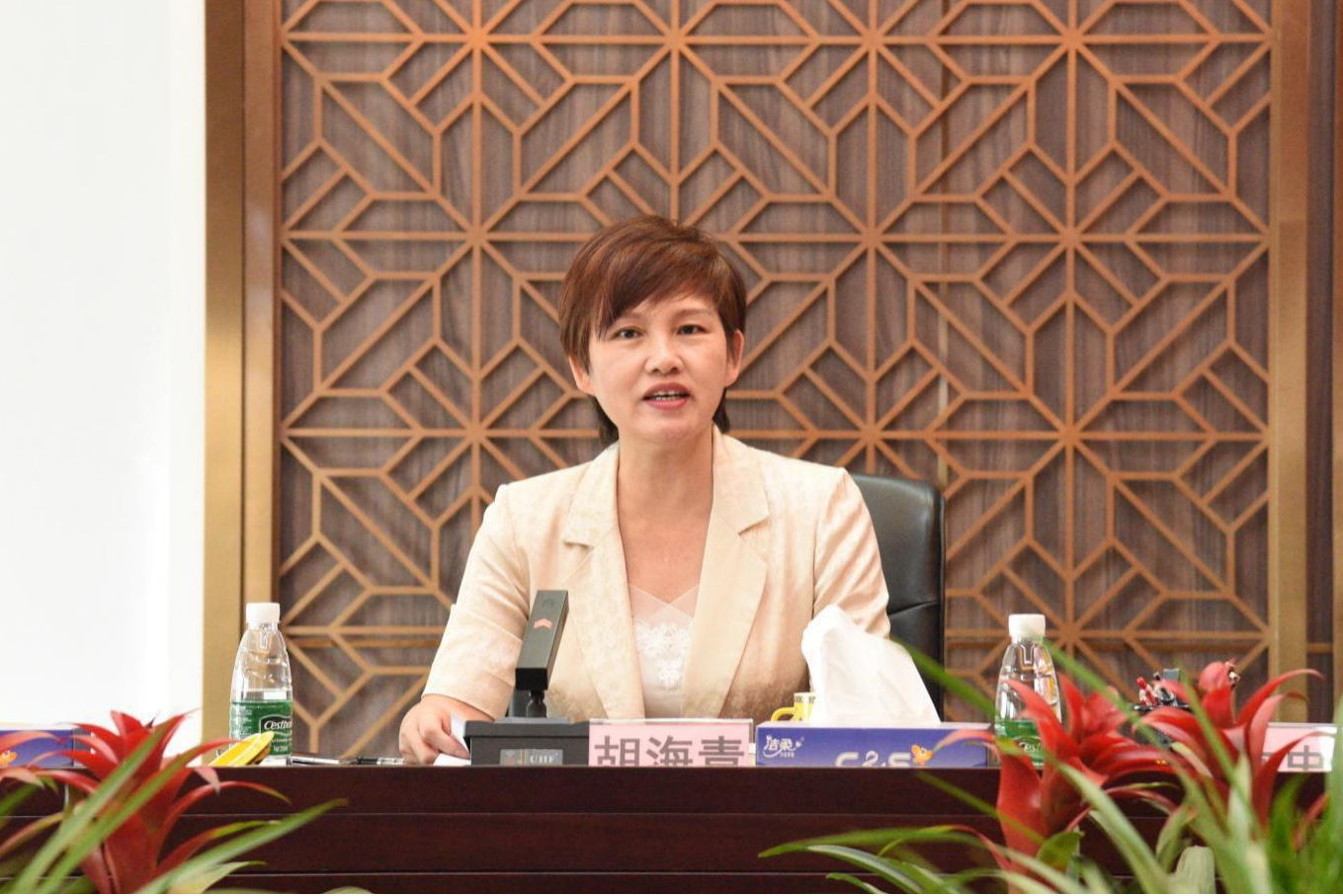 上图为天利集团胡海青副总裁在集团中期财务会议上发言